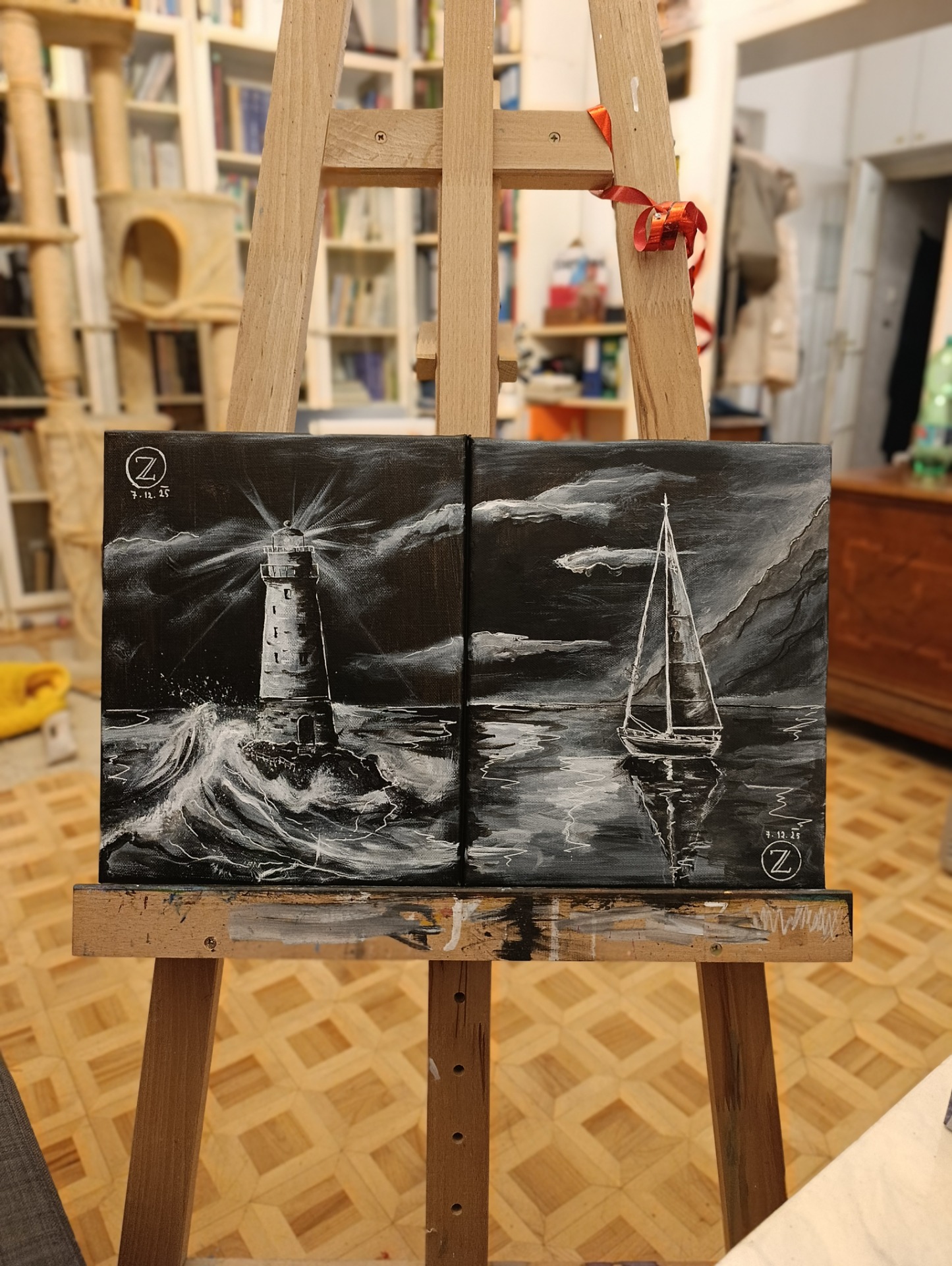 PRODÁNO "Maják", akryl na plátně, 40x50cm, na objednávku
