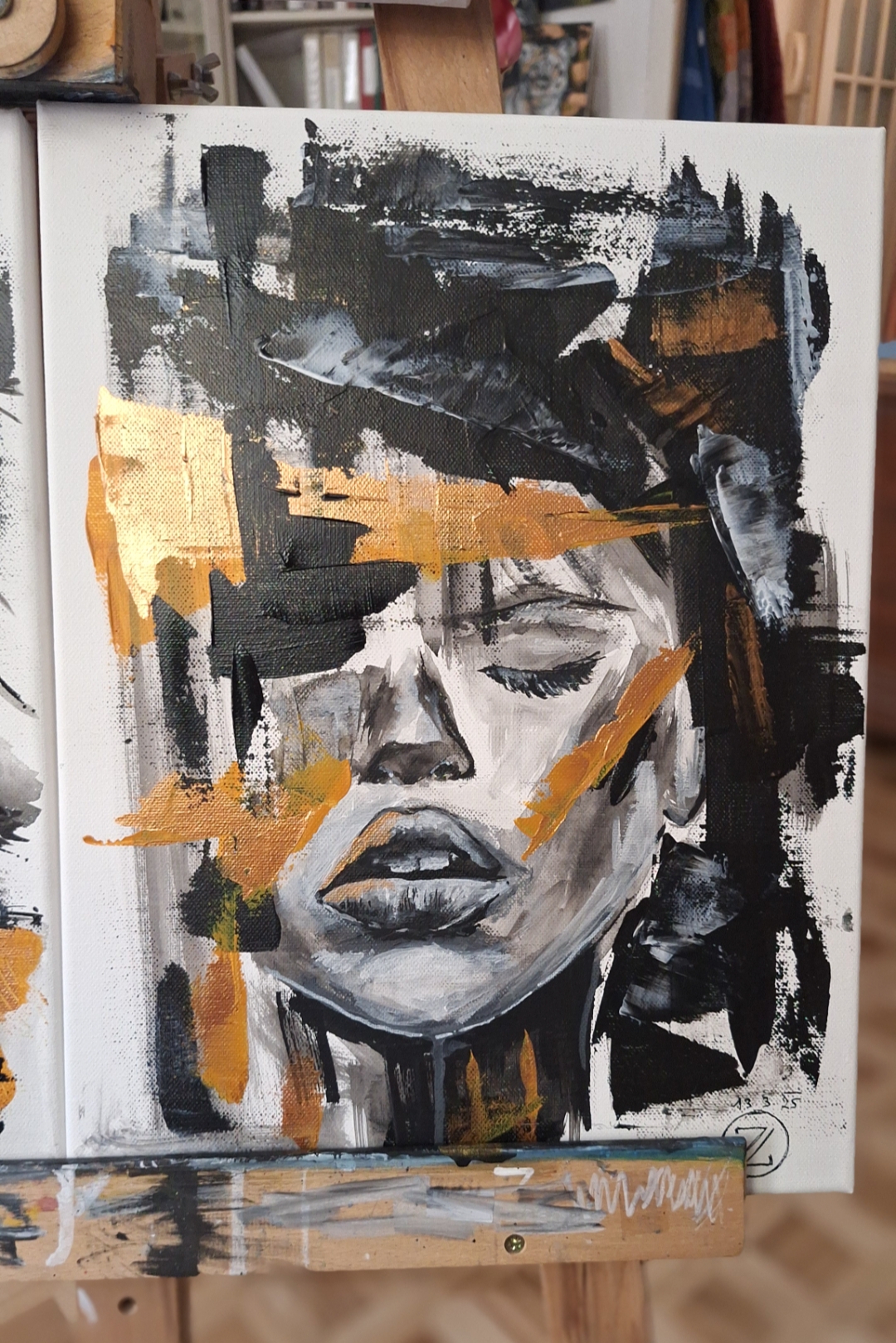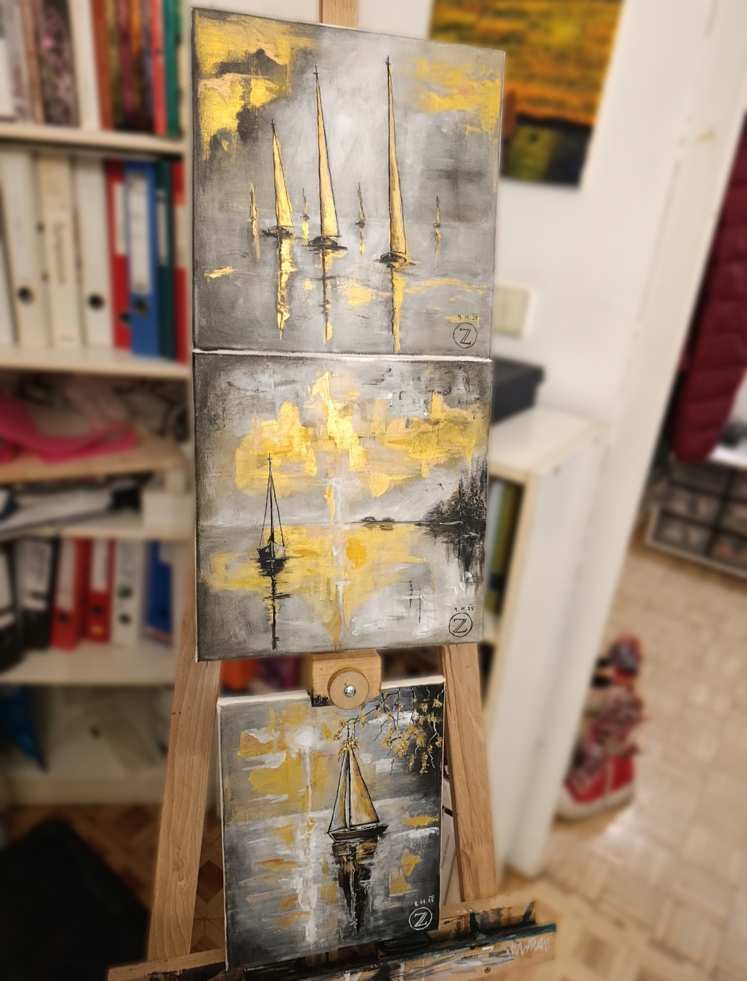"Gold", PRODÁNO, akryl na plátně, 20x30cm, trojice obrazů, 4700,-