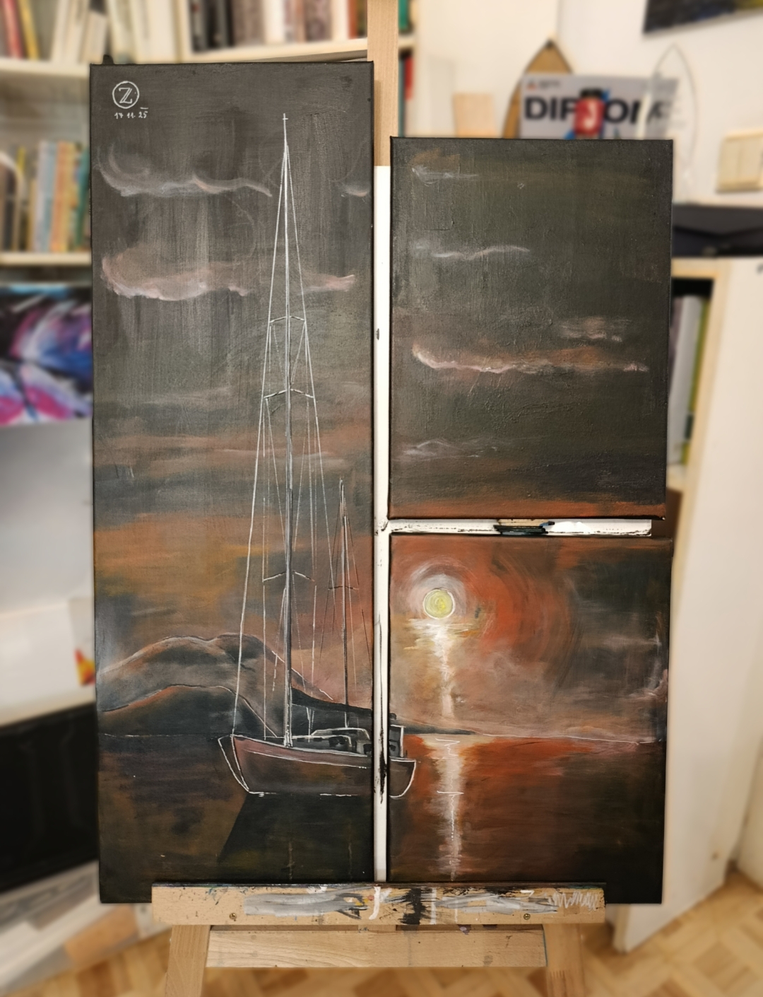 PRODÁNO "Klid před bouří" - akryl na platně, 20x60cm, 2300,-
